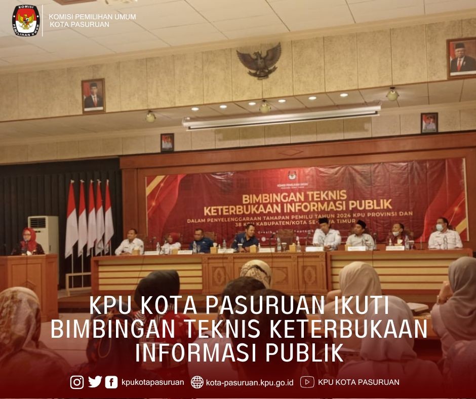 (23-9-2022) www.kota-pasuruan.kpu.go.id - Dalam rangka meningkatkan keterbukaan informasi publik pada penyelenggaraan tahapan Pemilu Tahun 2024, KPU Kota Pasuruan ikuti Bimbingan Teknis Keterbukaan Informasi Publik, Kamis (22/9). Bertempat di Ruang Mandala Bhakti Praja Kantor Bupati Gresik, acara ini dihadiri oleh Divisi Sosdiklih Parmas, Kasubbag Teknis dan Hupmas serta operator e-PPID se-Jawa Timur.