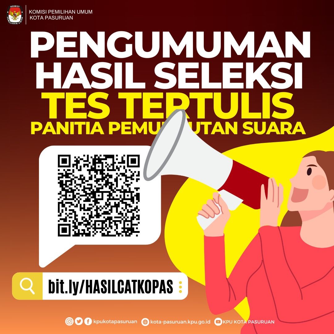 Pengumuman Hasil Akhir Seleksi Panitia Pemungutan Suara Rabu, 18 Januari 2023 18:26 515 Berikut adalah pengumuman hasil akhir seleksi Panitia Pemungutan Suara (PPS) Kota Pasuruan. KLIK DISINI Baca Selengkapnya